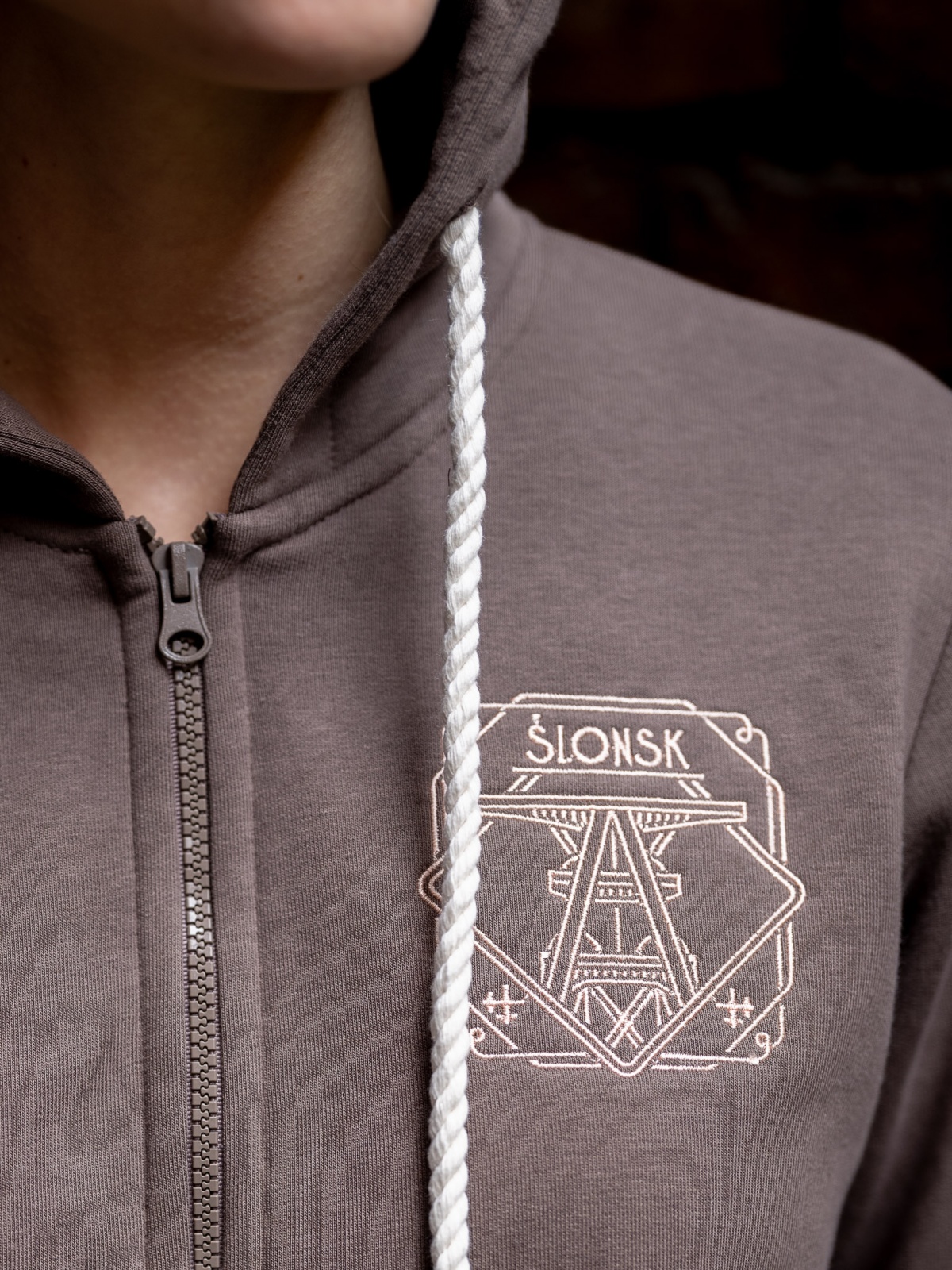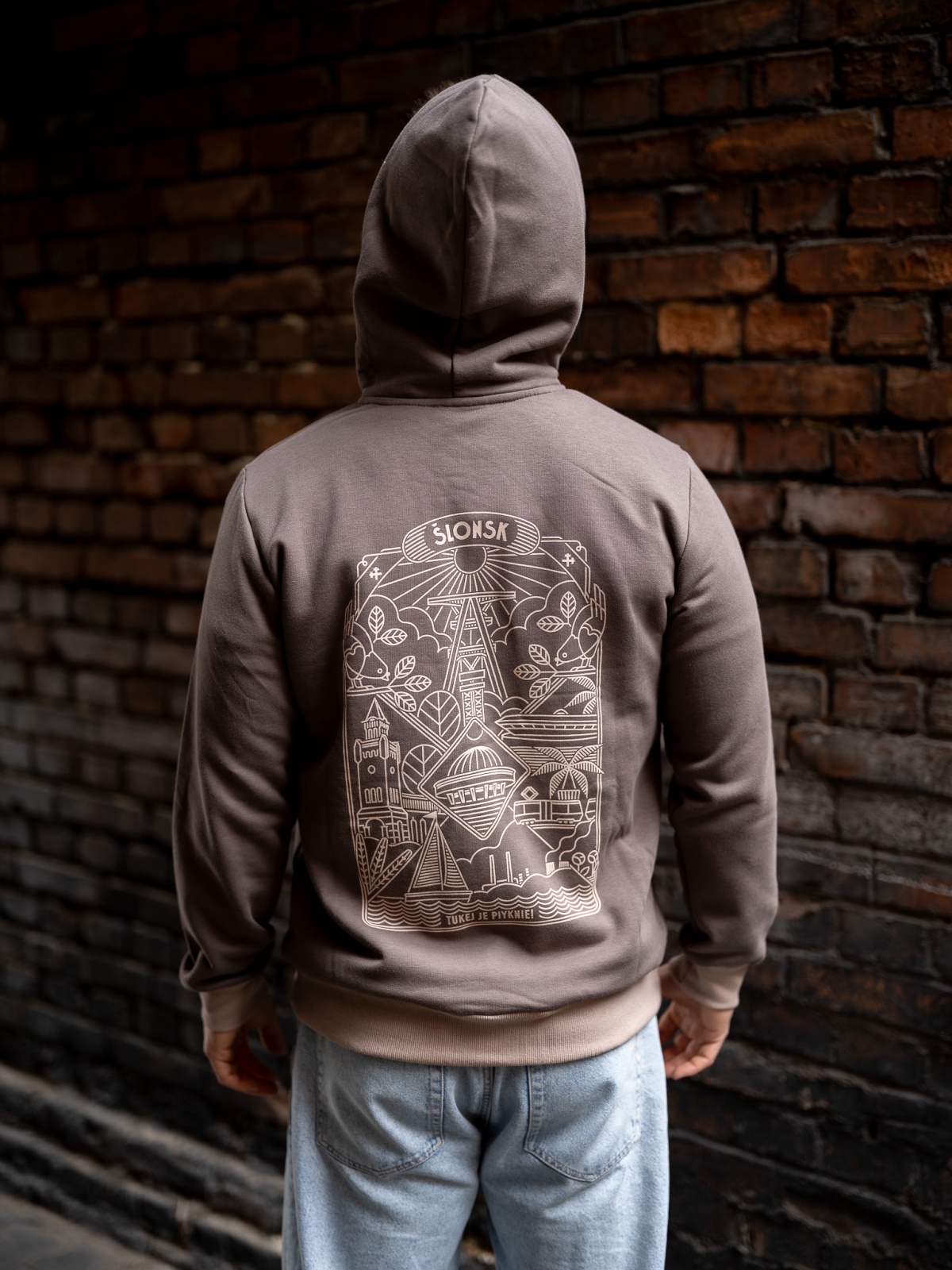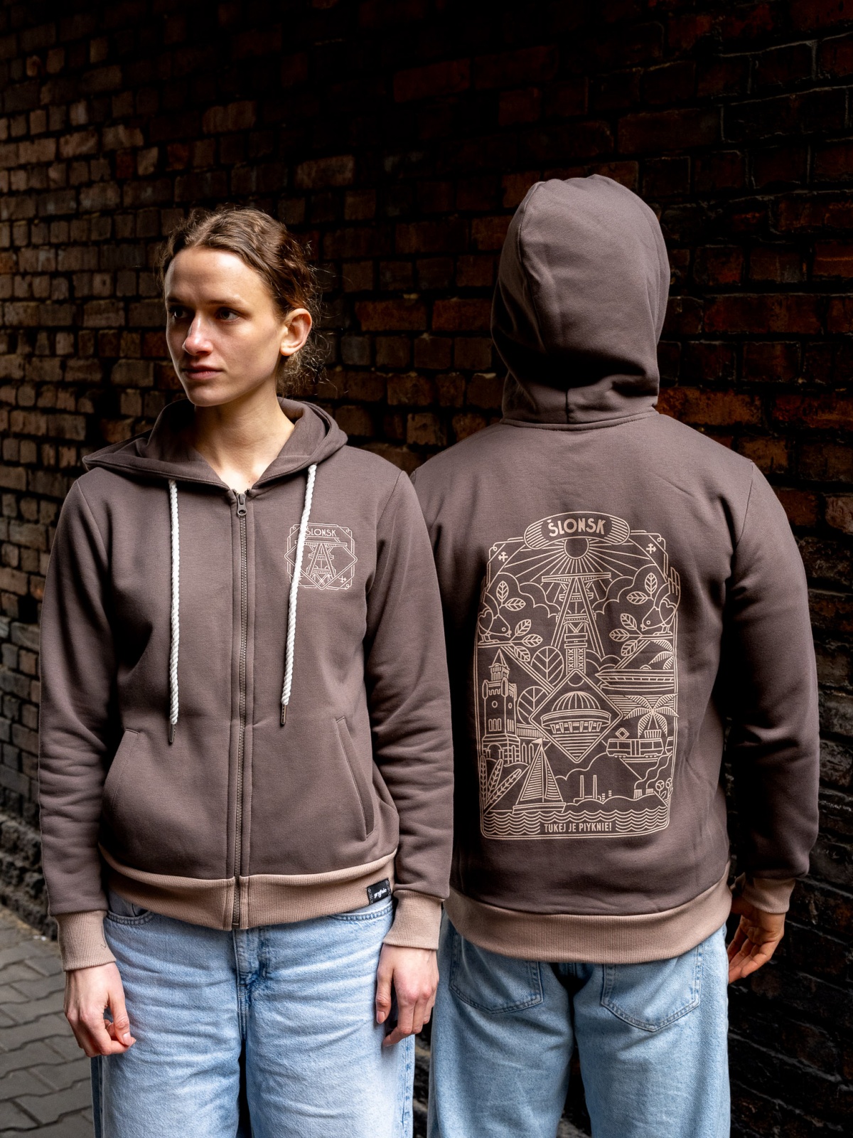 Z przodku haft "Ślonsk", ze zadku nadruk (sitodruk) ze ślonskim wzorem.