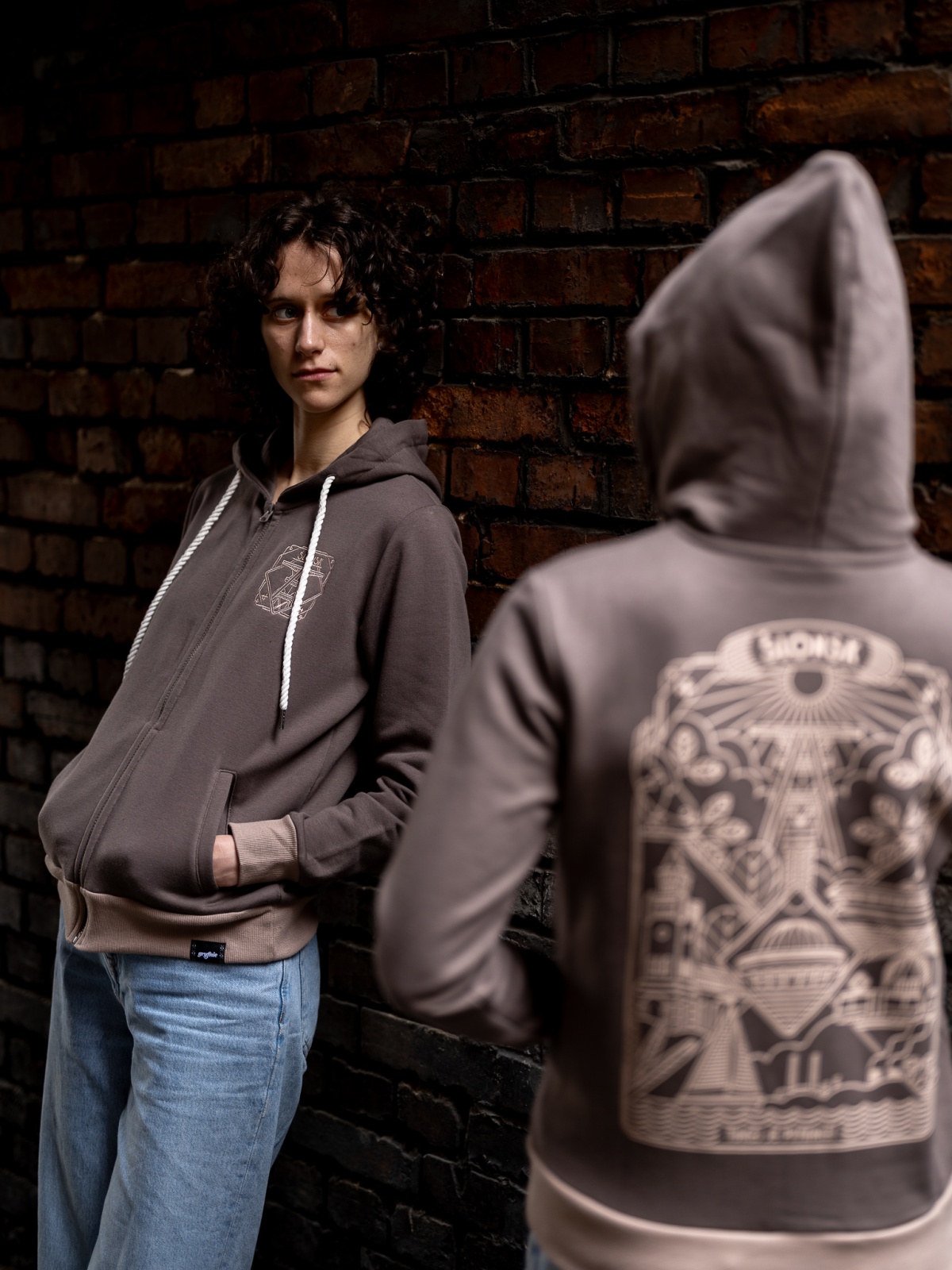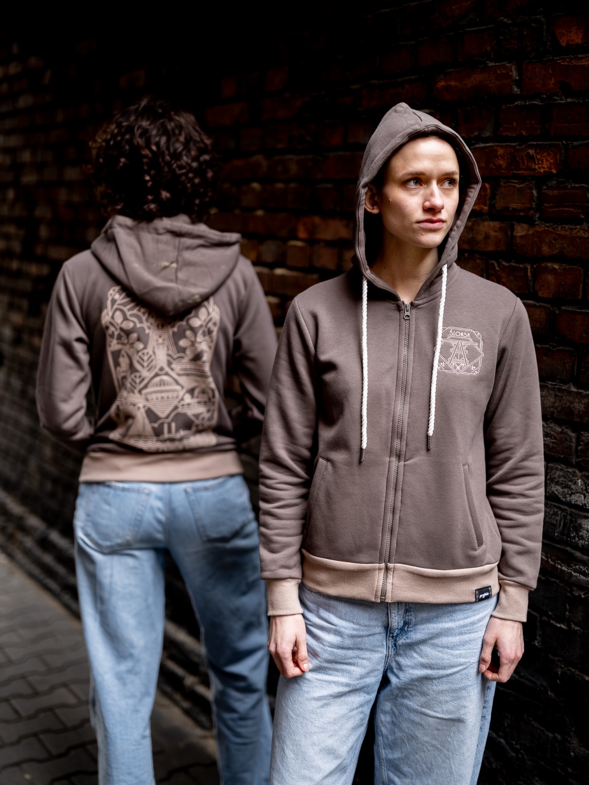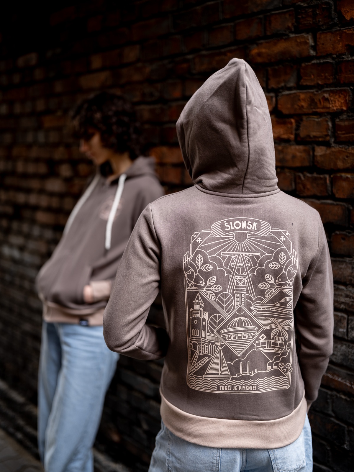 Z przodku haft "Ślonsk", ze zadku nadruk (sitodruk) ze ślonskim wzorem.