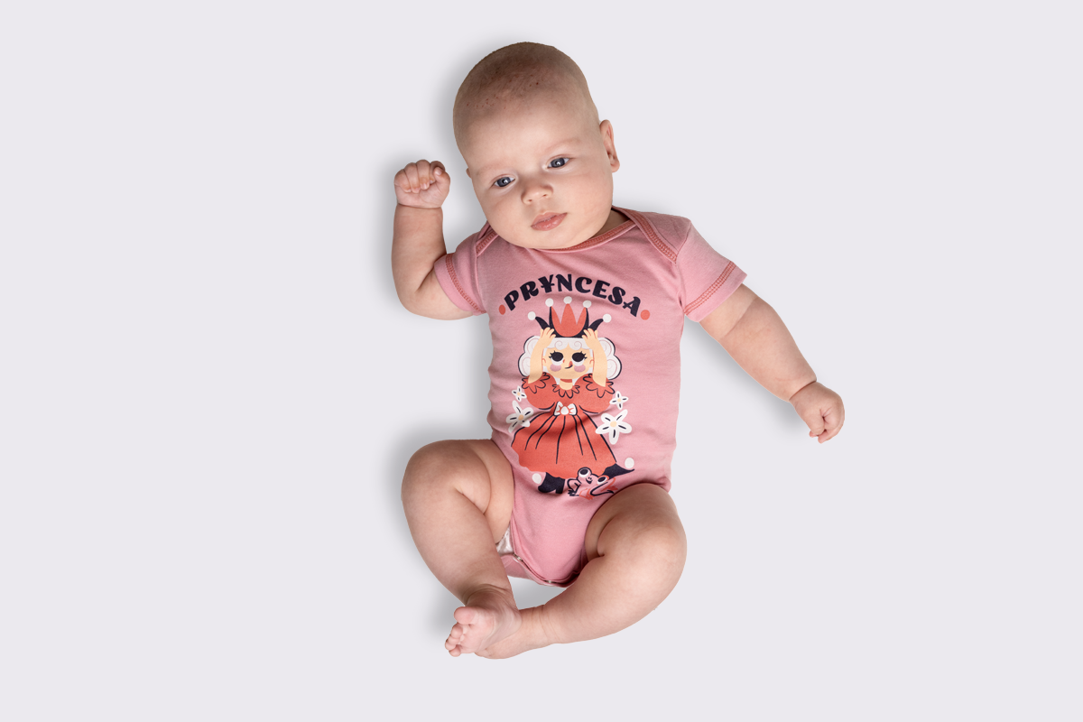100% bawełna – po kierej bajtlom niy bydzie sie nic dzioć bo niy uczulo, sitodruk.