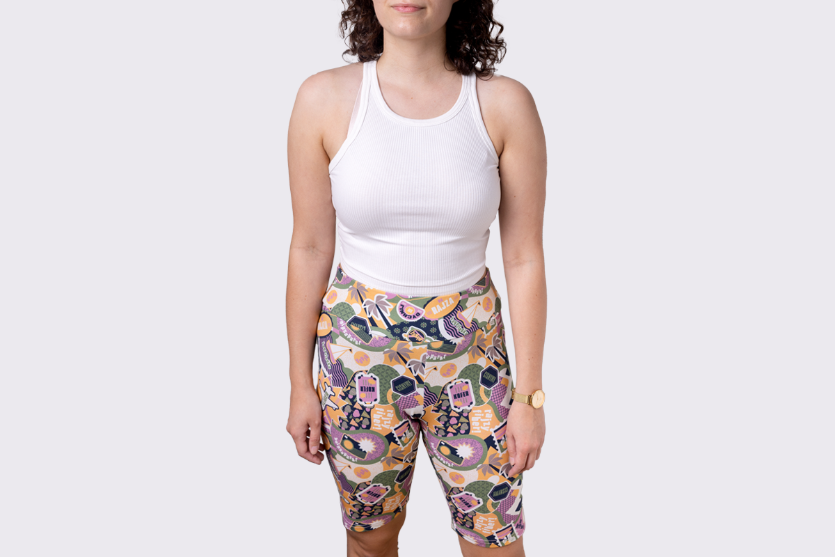 95% bawełna, 5% elastan. sublimacja. Na zdjyńciu noszom rozmiar S/M