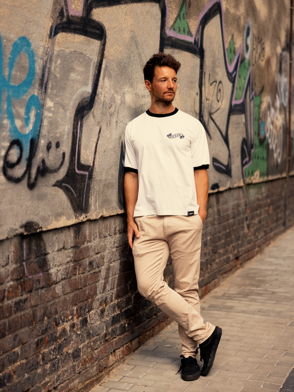 100% bawełna, gramatura 180g , sitodruk. Na zdjyńciu rozmiar M.
