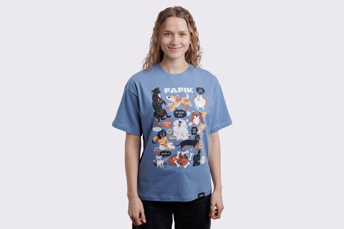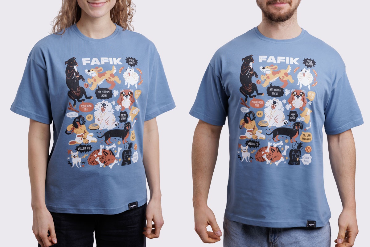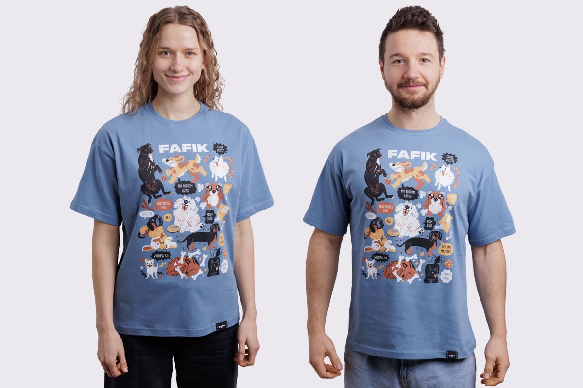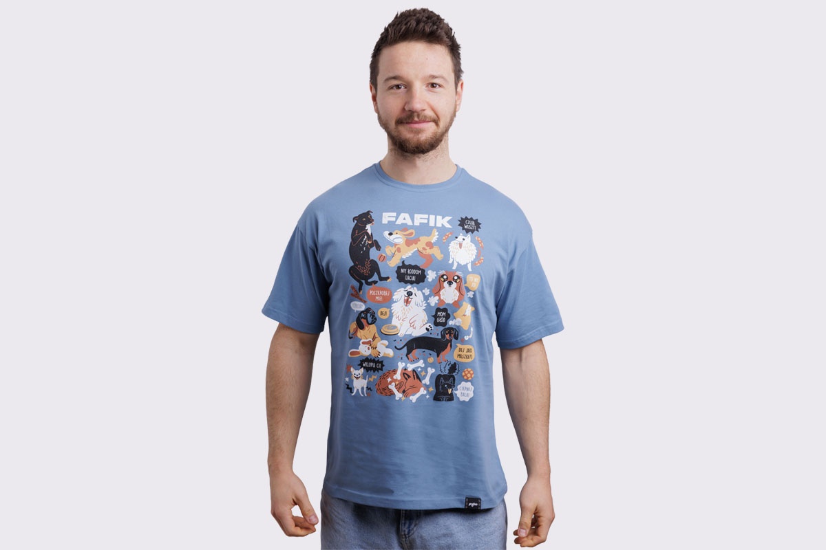Koszulka z fafikami w roztomajtych, typowych dlo nich sytuacjach. W som roz dlo tych co przajom puchatym zwiyrzom!