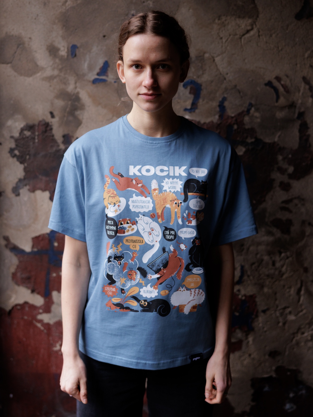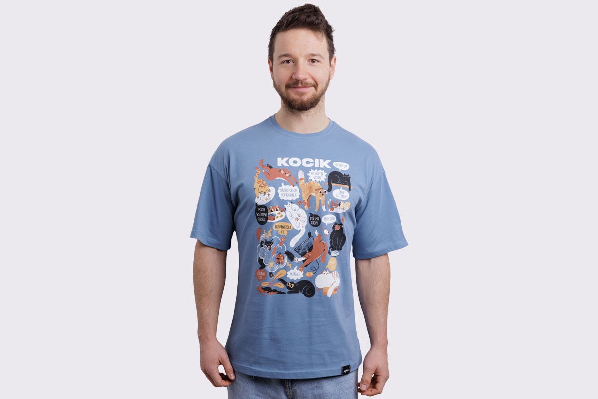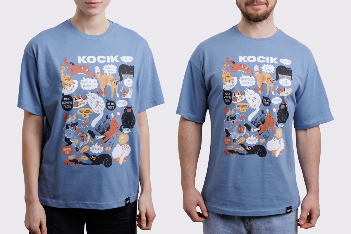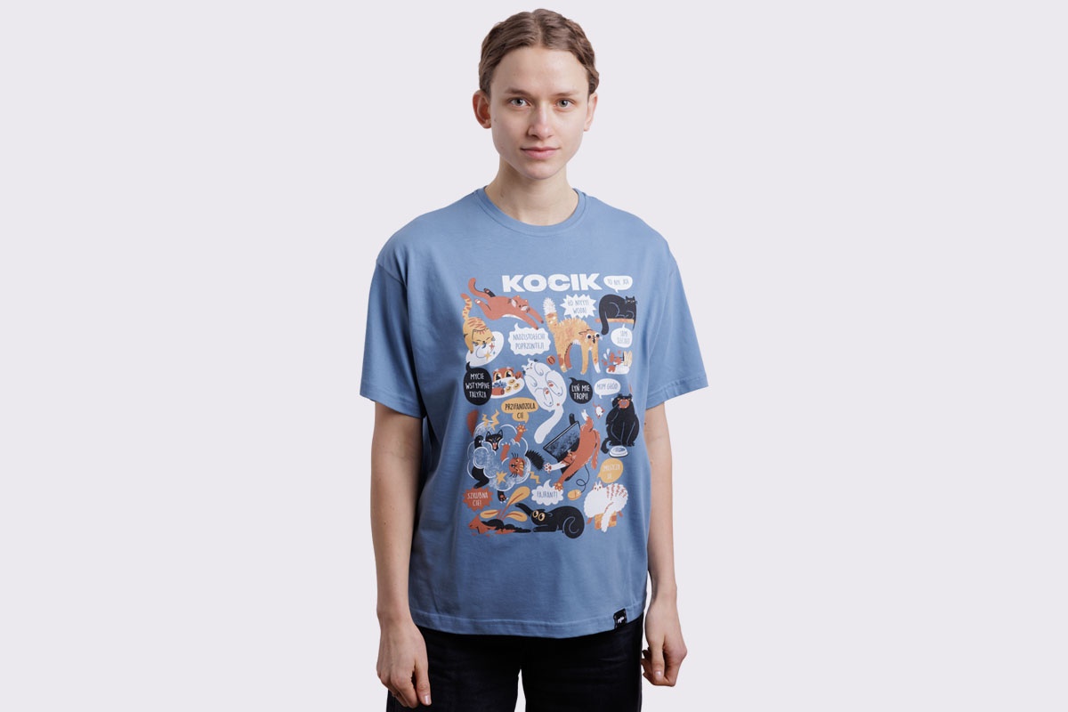 Koszulka z kocikami w roztomajtych, typowych dlo nich sytuacjach. W som roz dlo tych co przajom puchatym zwiyrzom!
