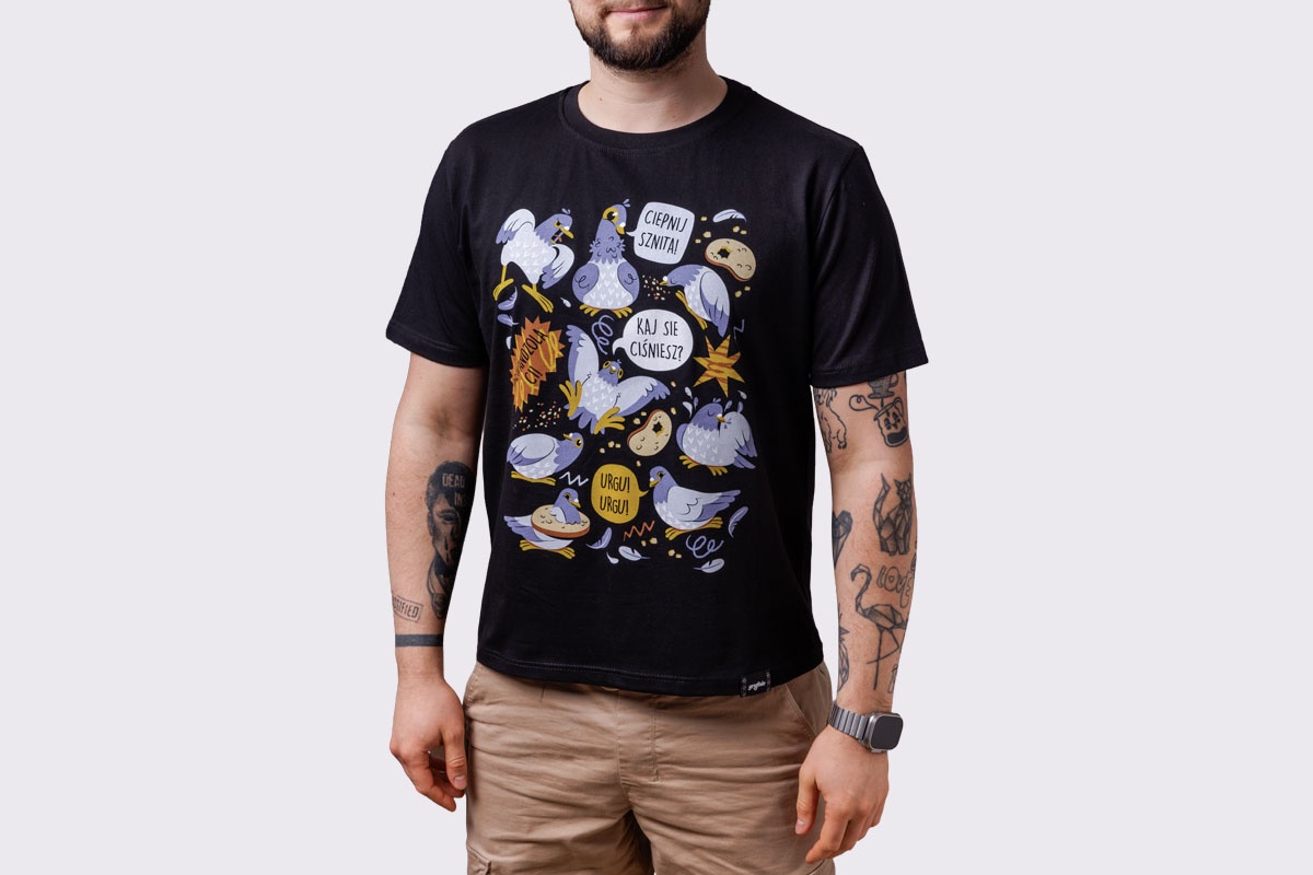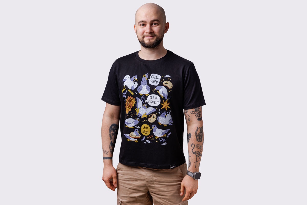 100% bawełna, gramatura 180g , sitodruk. Na zdjyńciu rozmiar M.