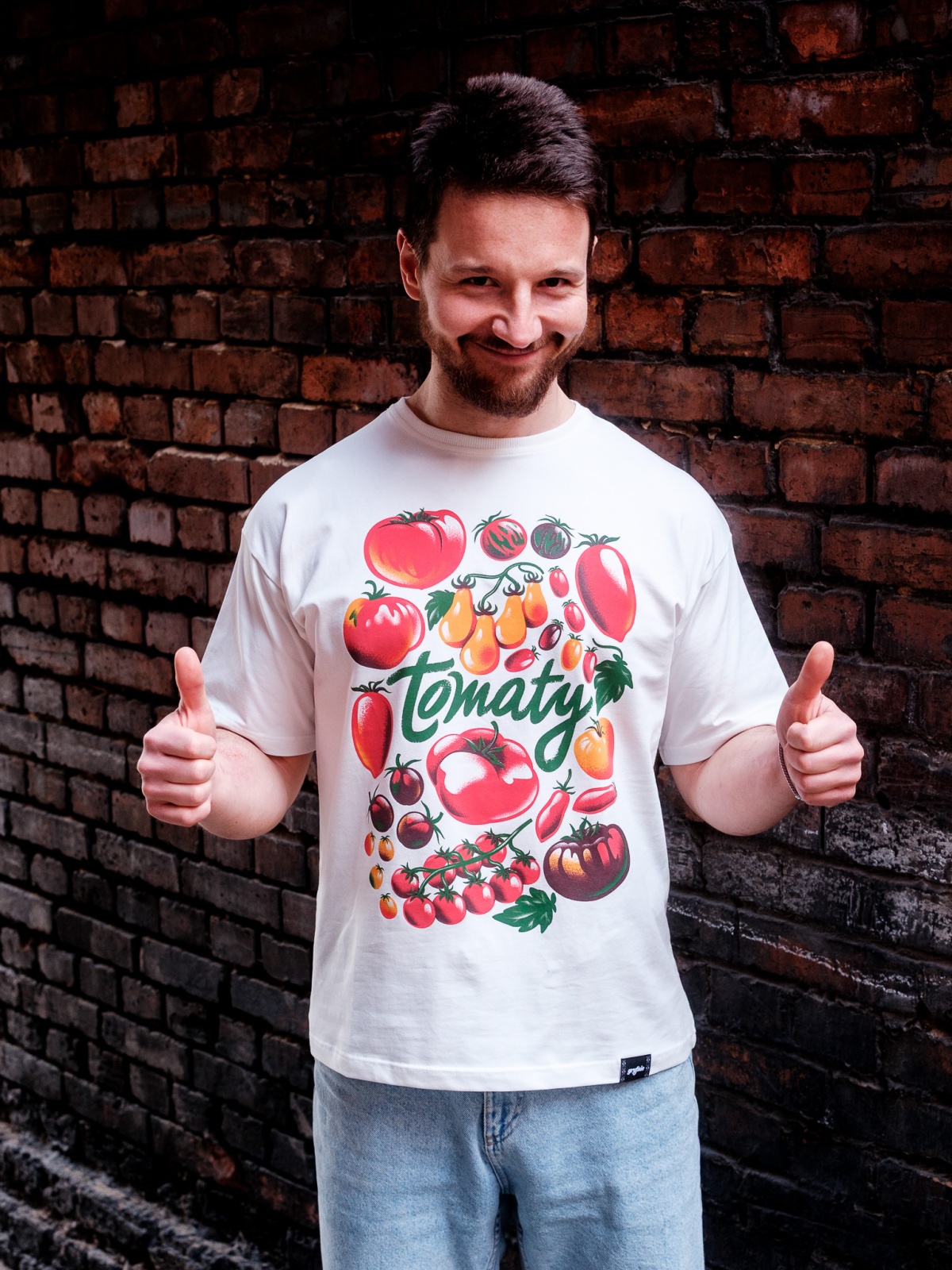 "Tomaty" to som po polsku "pomidory"Nadowo sie na chopy i na baby. 100% bawełna.