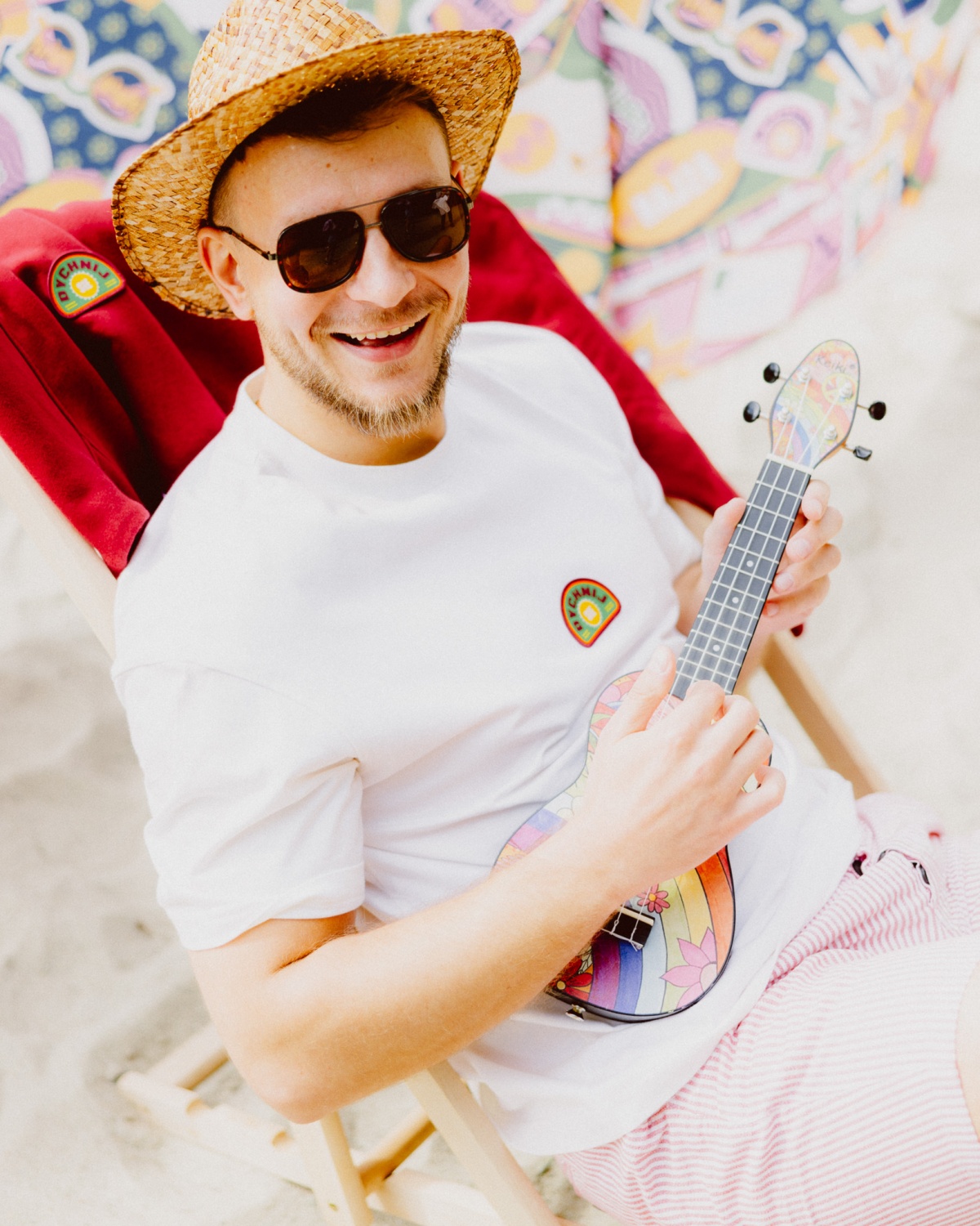 100% bawełna, gramatura 180g , naszywka "dychnij sie". Na zdjyńciu rozmiar M.