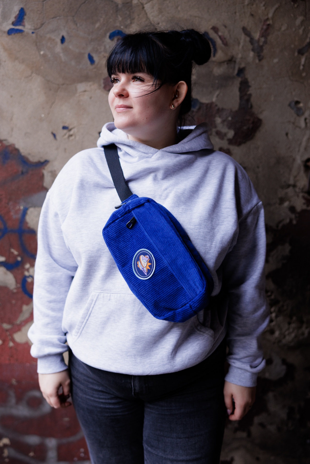 Tkanina sztruksowo 100% poliester, podszewka wodporno 100% poliester. Jedyn rozmiar, regulowany sztruksowy pasek, wszyjstkim bydzie pasowoł.