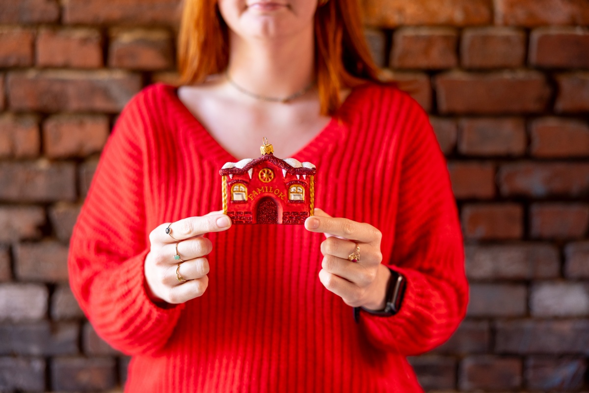 Glaskugla we kształcie FAMILOK, ryncznie rychtowano. Szklano. Z brokatem. Fest elegancko. Nado sie do kożdyj chałpy.