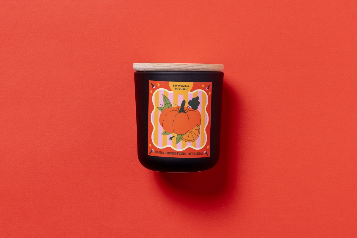 Sprzedowane we gryfnyj czornyj krauzce, ze drzewianym deklem. 170g wosku sojowego.