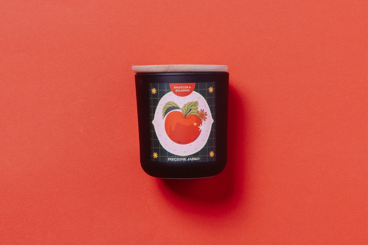 Sprzedowane we gryfnyj czornyj krauzce, ze drzewianym deklem. 170g wosku sojowego.