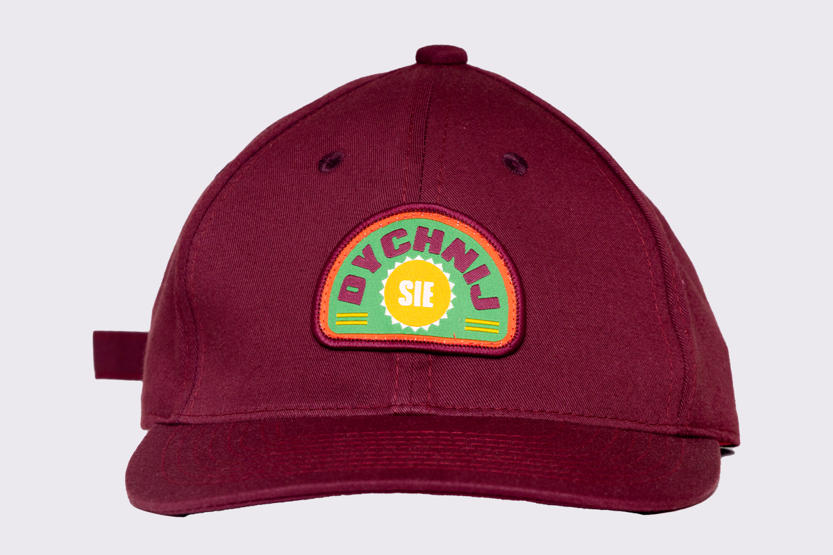 Szildówka z haftym płaskim z przodku „dychnij sie" i z zadku „gryfnie”.